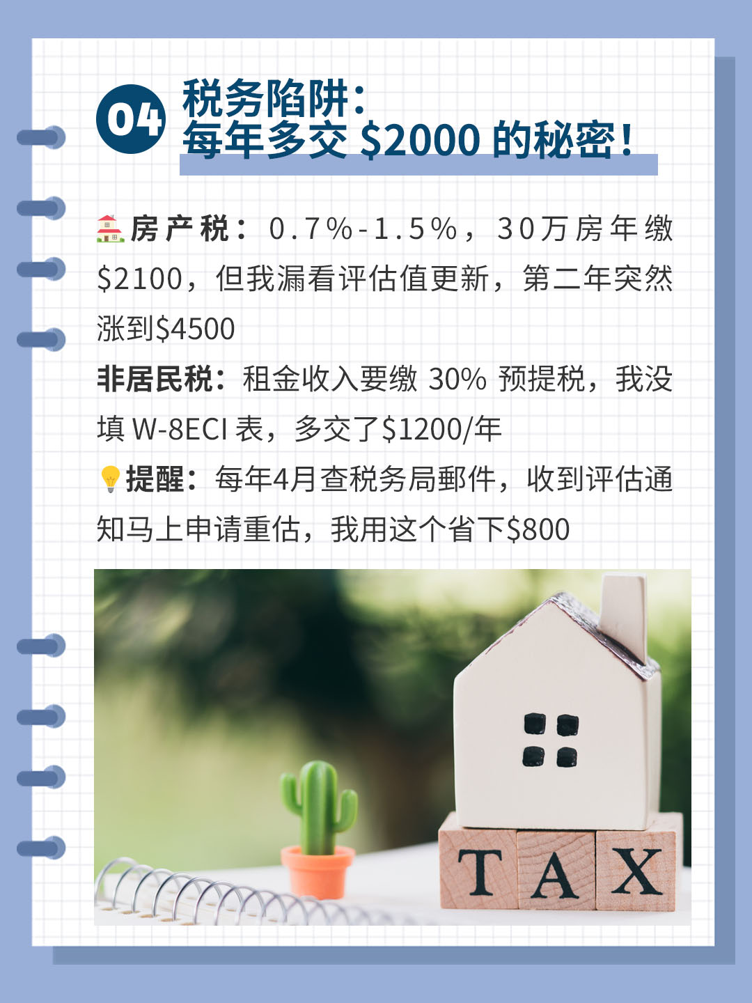 🌟 四、税务陷阱:每年多交 $2000 的秘密!