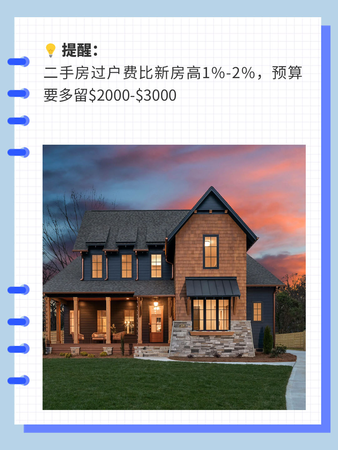 💡 提醒:二手房过户费比新房高1%-2%,预算要多留$2000-$3000