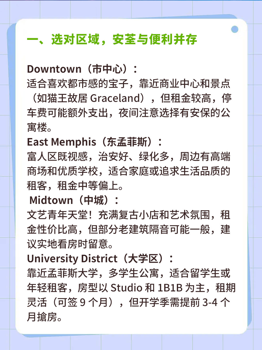 在孟菲斯租房,既要挑到心仪的家,也要避开各种 “隐形雷区”~ 整理了超实用的注意事项,从区域选择到合同细节,手把手教你少走弯路👇